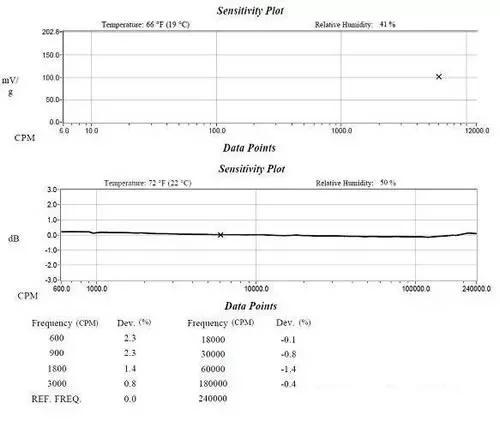 例如,一个高精度的加速度传感器标称灵敏度为100 mV/ g±5%(95 mV/g至105mV/g),而一个低成本加速度传感器标称灵敏度100mV/g± 10%(90 mV/g至110mV/g)。客户可以在数据采集系统设置为传感器的标定灵敏度,这样低成本的传感器也能提供准确,可重复的数据。至于频率,高精度加速度传感器通常偏差是5%,而低成本的传感器,可以提供3 dB的频率范围。尽管如此,一个低成本的传感器可以提供优异的频率响应。